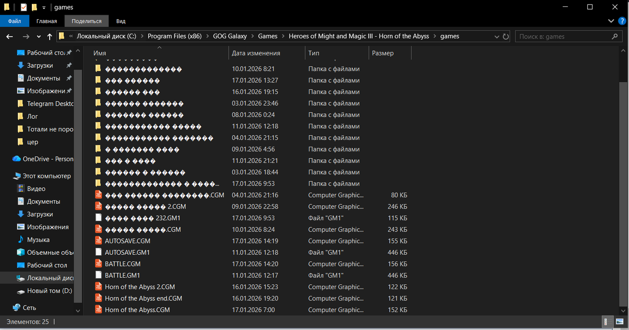 В общем, нужно знать, что за ОС, как выглядят сохранения в операционке в папке c:/Games/Heroes3_HotA/games или куда там Герои установлены, а ещё были ли эти корявые сохранения сделаны в той же операционке и той же версии игры, или в других