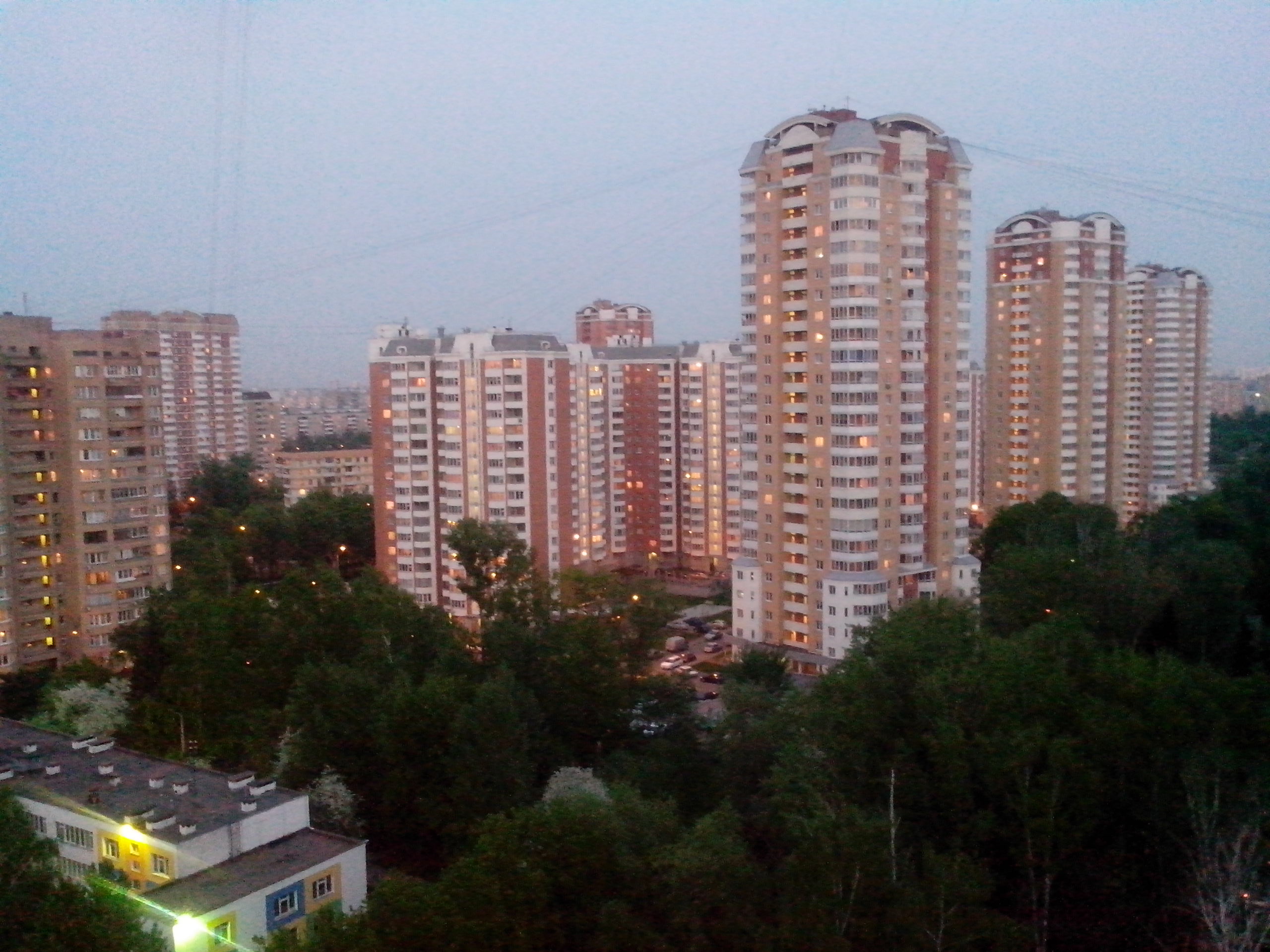 Качество то ещё (вечер, освещение, телефон), но вот. Это в родном Нижнем. Окна выходят на две стороны, поэтому вида два.