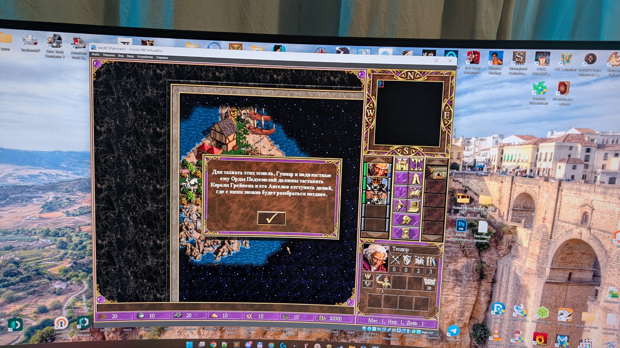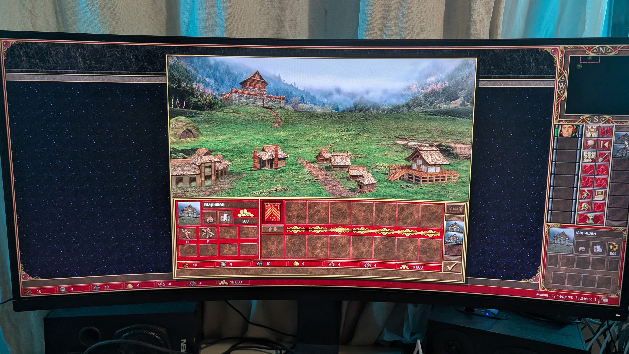 . Сейчас это, конечно, выглядит максимально глупо. Но сама атмосфера игры, графика, стиль мне очень понравились. Я очень любил настолки и фэнтезийные миры из книг, а тут это было похоже на всё сразу, красиво анимировано, и с этим всем можно было взаимодействовать. Вообщем это была любовь с первого взгляда. Прошло какое-то время, и в следующее моё посещение сестра рассказала, что разобралась как играть, и что игра очень интересная. Можно строить здания, нанимать существ и устраивать битвы. Играла в основном она, а я смотрел. Играли естественно на пешке, существ седьмого уровня не строили вообще (слишком дорого) – изучали игру. Через пару недель случился курьёз – игра начала писать, что ей не хватает места на диске и необходимо освободить хотя бы 5 Мегабайт, и мы думали, что освободить эти мегабайты надо именно на лазерном диске (игра не шла без наличия диска в приводе). И никак не могли понять, как оттуда что-то удалить. Это показывает наш уровень компьютерной грамотности на то время.